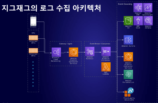 실시간 데이터 스트림은 아마존 키네시스 파이어호스를 활용한다. 실시간 데이터 양이 커지면 키네시스 파이어호스를 쉽게 확장해서 쓴다고 한다. 소성운 리더는 “하루에 수십억건 적재되는 행동 로그도 키네시스를 활용해 적재하고 있다”고 설명했다.