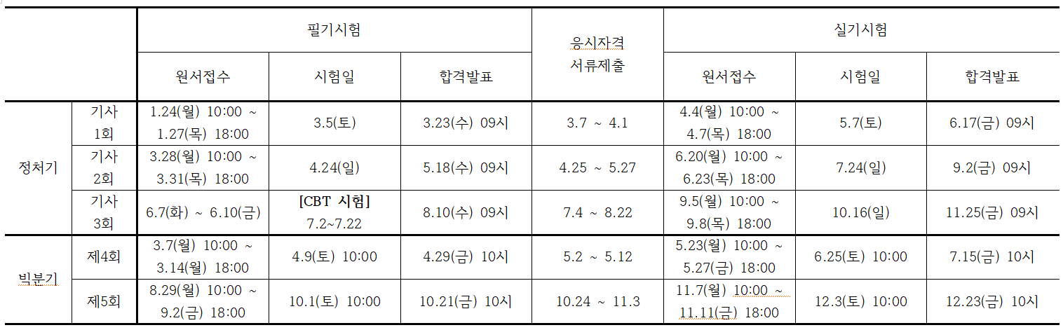 | 기사 1회 | 1.24(월) 10:00 ~ 1.27(목) 18:00 | 3.5(토) | 3.23(수) 09시 | 3.7~4.1 | 4.4(월) 10:00 ~ 4.7(목) 18:00 | 5.7(토) | 6.17(금) 09시 |