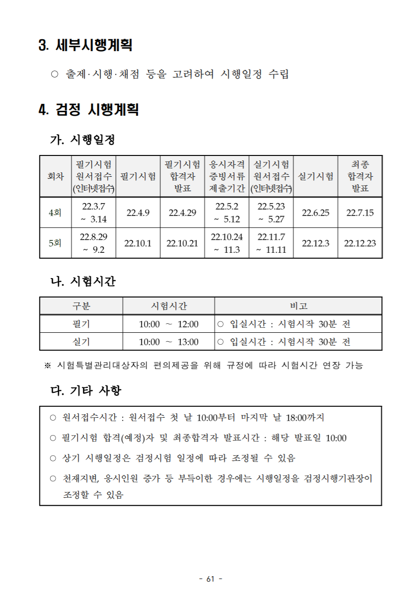 더욱 자세한 내용은 아래 검정시행계획 파일을 참고해주세요. 고용노동부 공지사항에 남겨져 있는 것과 완전히 동일합니다.