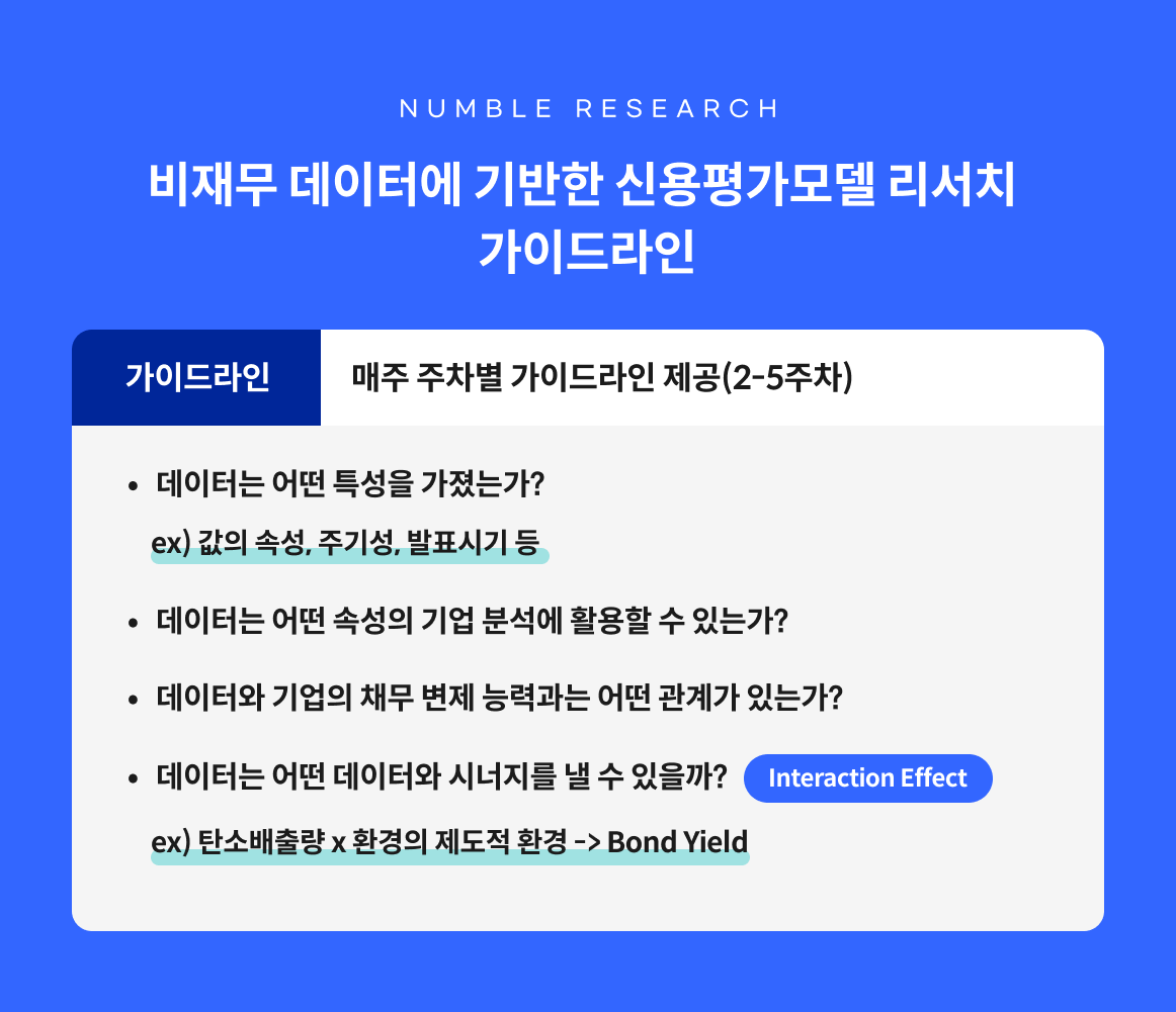 '핀테크가 주목하는 '디지털 흔적'을 활용한 비재무 데이터 기반 대안신용평가 모델 리서치', 데이터 분석은 물론 금융 디지털에 관심을 가졌던 저에게 있어 한번 도전해보고 싶은 프로그램이었습니다. 비록 유료 프로그램이고, 강의가 제공되는 것도 아니지만, 특정 주제에 대한 실용적인 데이터 분석을 해보고 싶다는 목적이 더 강했기에 신청하게 되었습니다.
