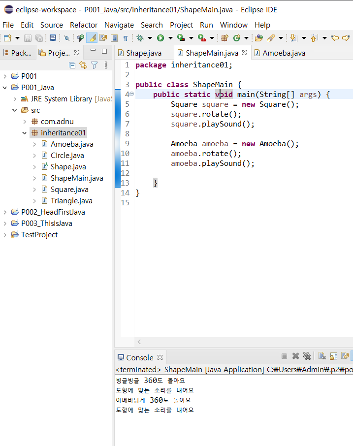 System.out.println("아메바답게 360도 돌아요");