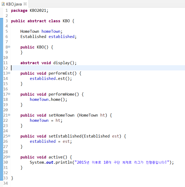 System.out.println("2015년 이후로 10개 구단 체제로 리그가 진행중입니다!");