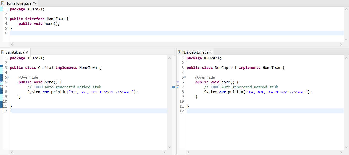 System.out.println("서울, 경기, 인천 등 수도권 구단입니다.");