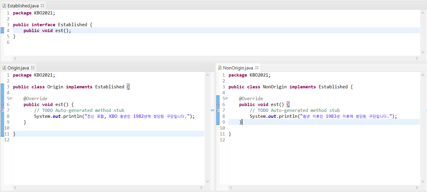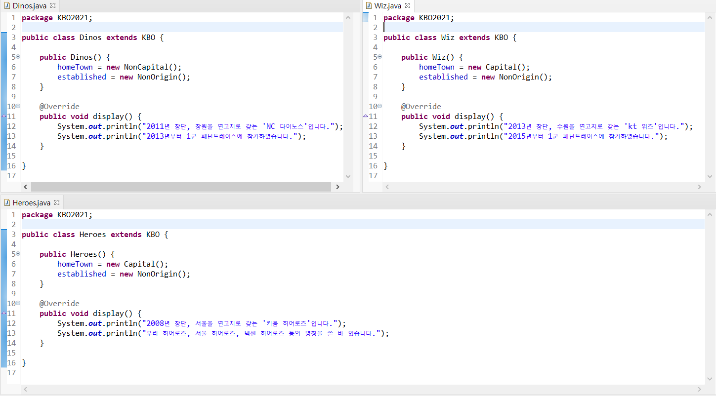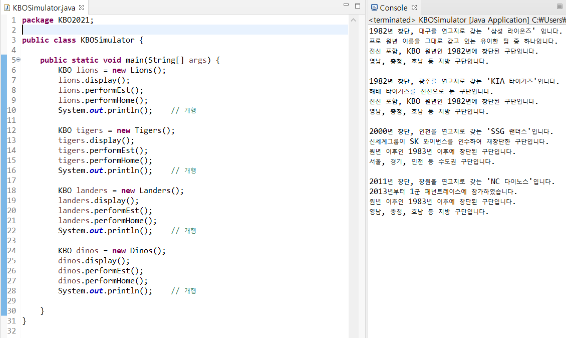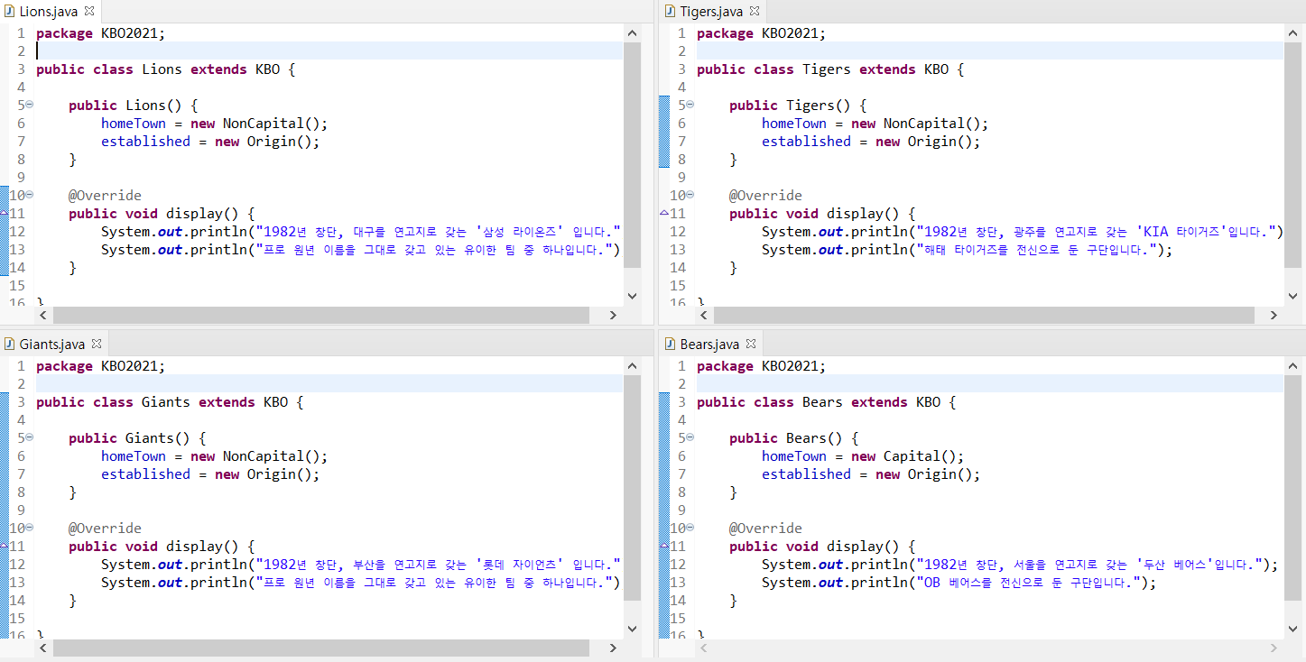 System.out.println("해태 타이거즈를 전신으로 둔 구단입니다.");