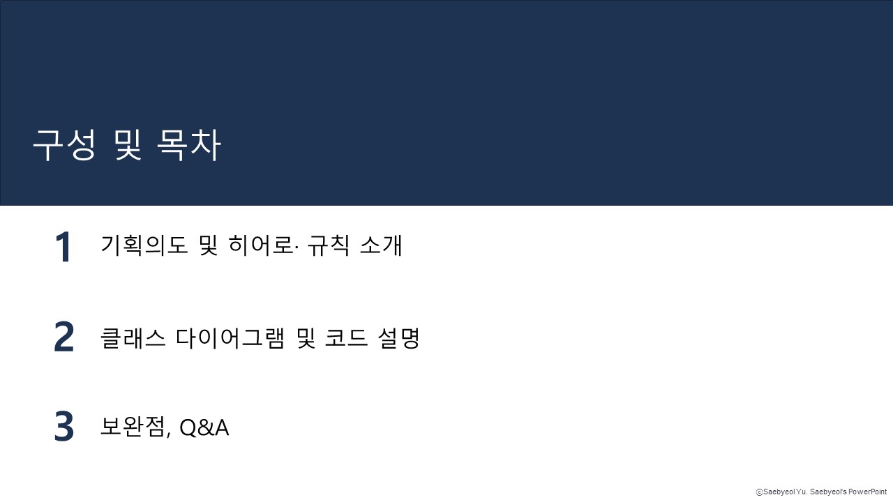 3) 역할: 팀장, 아이디어, 클래스 다이어그램, PPT 구성, 발표 역할 수행